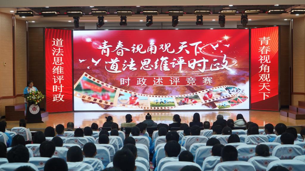 活动现场,中学生们围绕国家战略、社会热点及民生议题展开述评,表现亮眼。马克思主义学院思想政治教育专业系主任魏婉莹担任本次竞赛评委,并对竞赛进行点评。她指出,本次活动特色鲜明:一是视野开阔,选题覆盖文化科技、区域发展等多个领域,展现了青少年关注国家与时代的良好素养;二是思考深刻,参赛学生能够运用所学知识深入分析时政问题,逻辑清晰、观点鲜明;三是情怀真挚,述评中流露出浓厚的家国情怀与责任意识,使时政表达更具温度与力量。